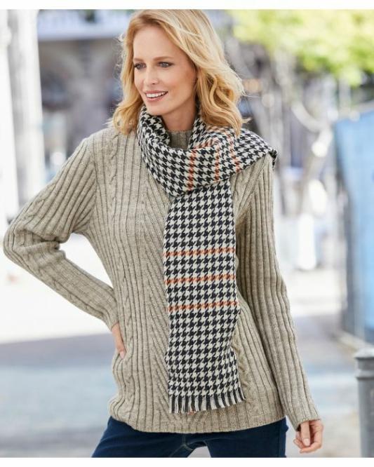 quantité de Femme Damart Foulards, | Echarpe Motif Pied-De-Coq Beige Imprimé