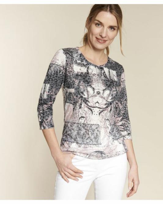 Femme Damart Tee-Shirts | Tee-Shirt Maille Dévorée Imprimé Rose Pâle Imp.