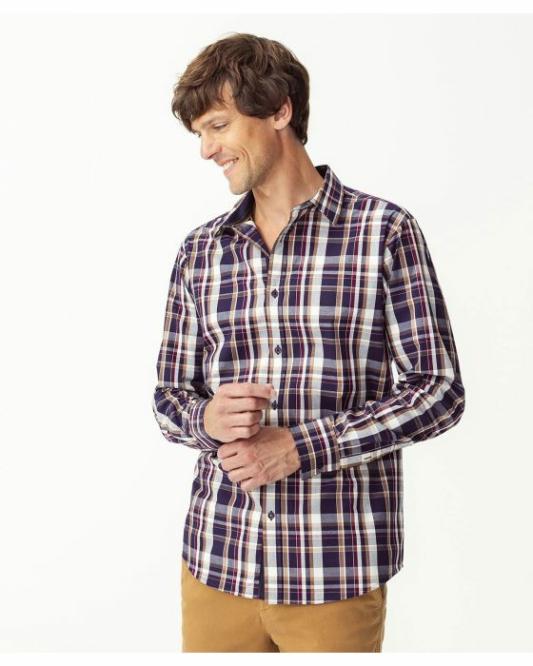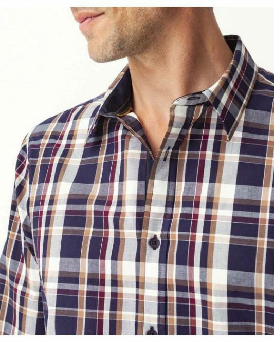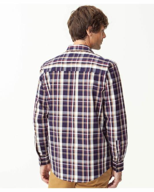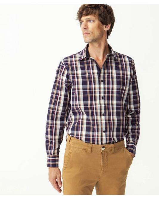 Homme Damart Chemises | Chemise Popeline À Carreaux Marine Carreaux